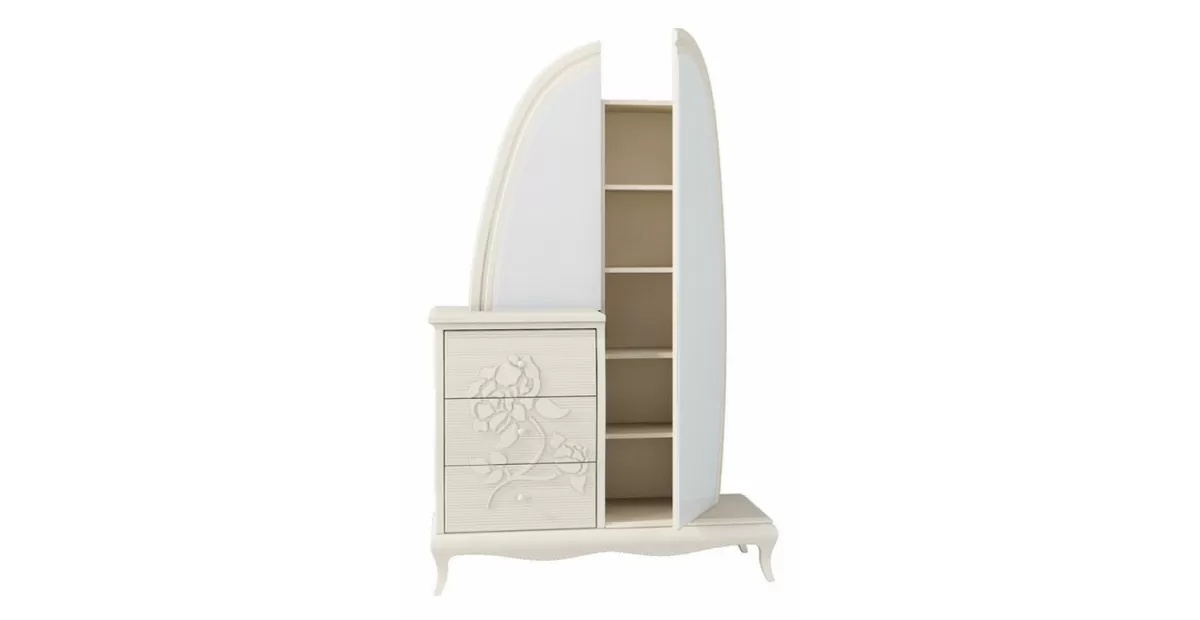 Комбинированный шкаф Астория МН-218-10 превосходно подходит для удобного, практичного хранения одежды и белья, поскольку представляет собой удачное сочетание компактного трюмо и небольшого комода, состоящего из эллиптического зеркала в полный рост и вместительной тумбы. Модель прекрасно подходит для просторного помещения, которому необходимо придать особый шик. Купить данный шкаф Вы можете как отдельно, так и с другими модулями коллекции в нашем официальном интернет-магазине.Особенности шкафа Астория МН-218-10: