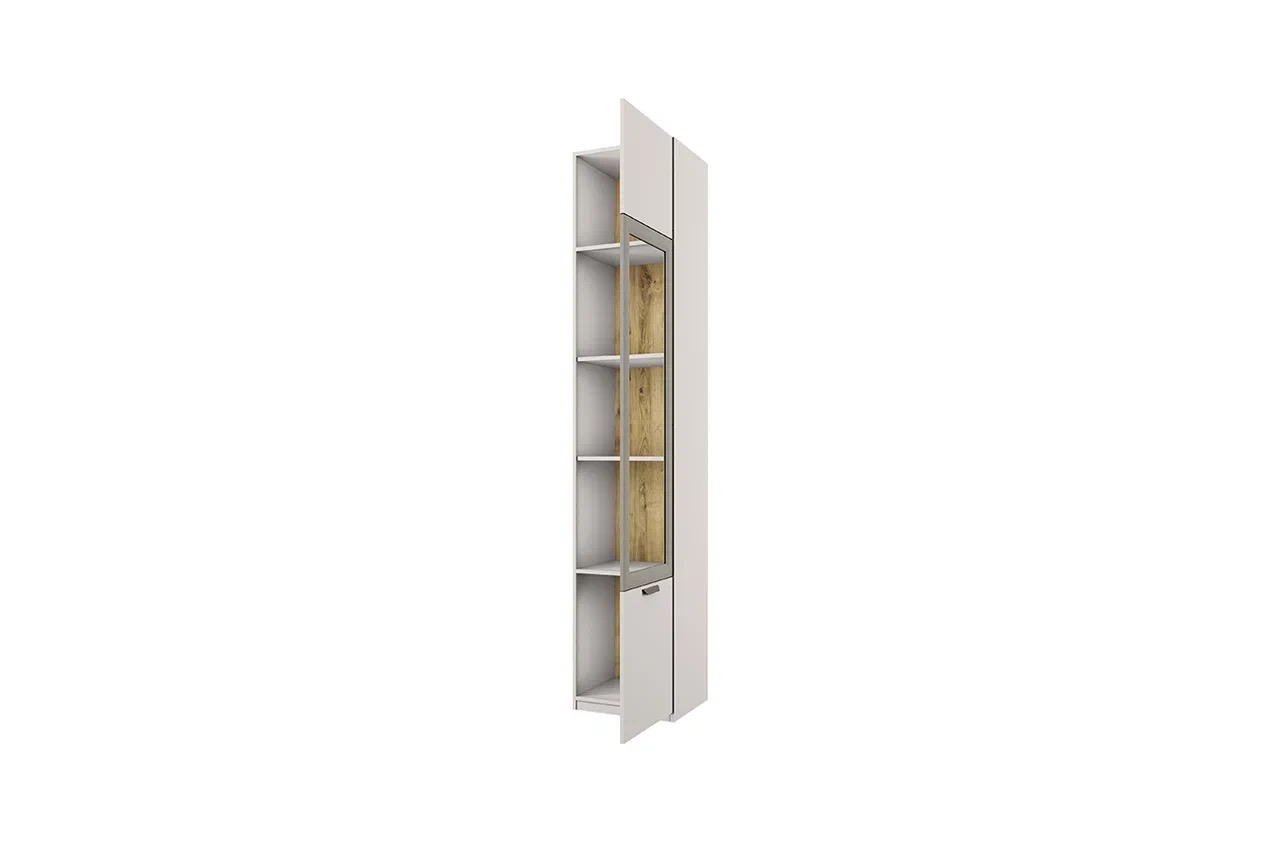 Коллекция мебели MODERN представляет собой идеальное сочетание современного стиля и утончённой элегантности, создавая в вашем доме атмосферу комфорта и визуального наслаждения. Все элементы этой коллекции выполнены в благородных оттенках персидского жемчуга и дуба наварра, что придаёт интерьеру гармонию светлых и тёплых тонов, наполняя пространство свежестью и уютом. Шкаф с витриной Anrex MODERN 1V2D, оформленный в этих элегантных цветах, является превосходным примером сочетания эстетической привлекательности и высокой функциональности. Изготовленный из высококачественных материалов, этот шкаф обеспечивает долговечность и надёжность, что делает его идеальным выбором для хранения и демонстрации различных предметов в вашем доме. Персидский жемчуг придаёт мебели воздушность и лёгкость, наполняя пространство светом и создавая атмосферу покоя и умиротворения, в то время как дуб наварра добавляет тёплые нотки и ощущение уюта, внося в интерьер природную гармонию. Коллекция мебели MODERN разработана с учётом последних тенденций в дизайне, предлагая стильные и функциональные решения для создания комфортного и современного интерьера в гостиной, прихожей и спальне. Каждый элемент этой коллекции продуман до мельчайших деталей, чтобы обеспечить максимальное удобство и эстетическое наслаждение, придавая вашему дому атмосферу чистоты и уюта. Шкаф с витриной Anrex MODERN 1V2D, как и вся коллекция, станет изысканным акцентом вашего интерьера, подчёркивая ваш утончённый вкус и стремление к совершенству, делая ваш дом ещё более привлекательным и уютным.Характеристики
