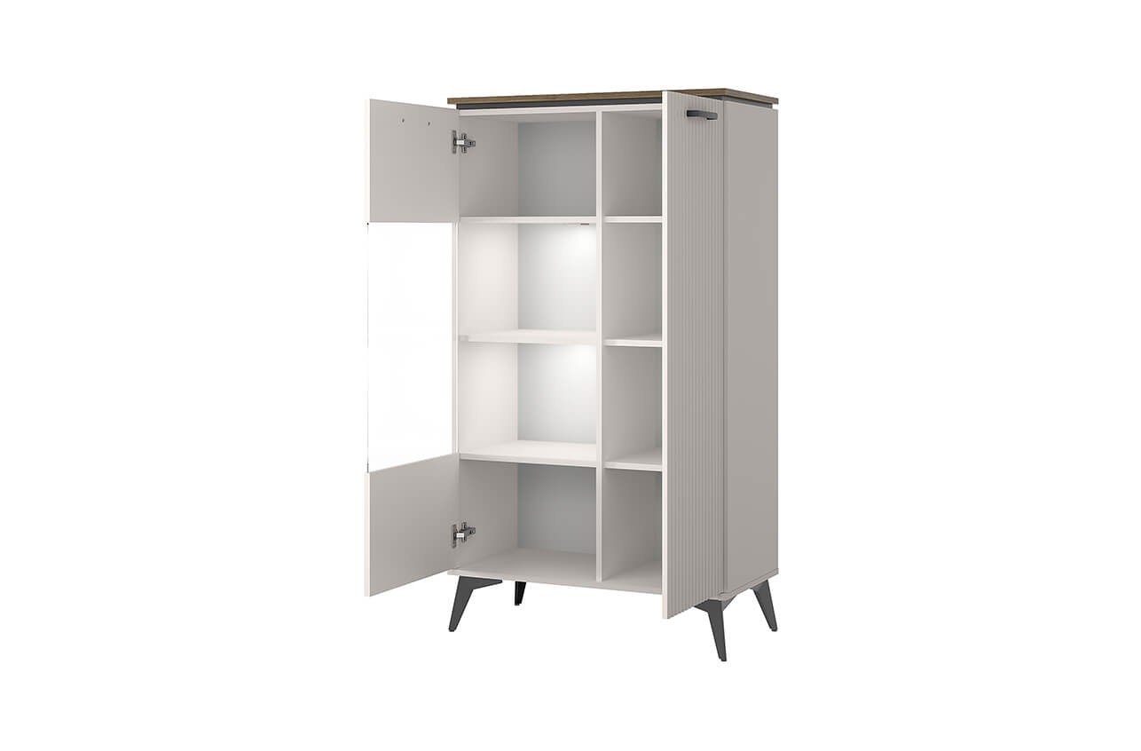 Возможна подсветка LED Коллекция Anrex VINATI, представленная в утончённых оттенках персидского жемчуга и веллингтона, воплощает идеальное сочетание элегантного стиля и функциональности. Шкаф с витриной Anrex VINATI 1V1D P станет изысканным дополнением вашего интерьера, придавая ему нотки роскоши и современности. Изготовленный из высококачественных материалов, этот шкаф обеспечивает прочность и долговечность, что гарантирует надёжное хранение ваших вещей. Его продуманный дизайн включает витрину и одну дверцу, что позволяет удобно разместить как декоративные элементы, так и практичные предметы, сохраняя эстетическую привлекательность. Шкаф Anrex VINATI 1V1D P гармонично сочетается с другими элементами коллекции, создавая единый стиль и придавая вашему дому атмосферу уюта и организованности. Выбирая этот шкаф, вы отдаёте предпочтение качеству, стилю и элегантности, делая ваш интерьер по-настоящему уникальным и привлекательным.Характеристики