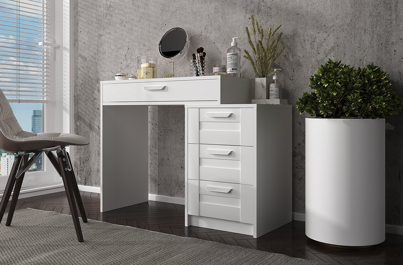 Коллекция мебели СКАГЕН представляет собой идеальное сочетание скандинавского стиля и функциональности, что делает ее отличным выбором для любого интерьера. Белый цвет коллекции придает ей свежесть и легкость, создавая ощущение простора и чистоты в помещении. Туалетный стол СКАГЕН 4S является ярким представителем этой коллекции, предлагая не только стильный внешний вид, но и практичность. Стол оснащен четырьмя вместительными ящиками, которые обеспечивают достаточно места для хранения косметики, аксессуаров и других личных вещей. Высококачественные материалы, использованные при изготовлении стола, гарантируют его долговечность и надежность. Элегантные линии и минималистичный дизайн делают этот стол идеальным дополнением к любой спальне или гардеробной. Белый цвет мебели легко сочетается с другими элементами интерьера, позволяя создавать гармоничные и уютные пространства. Коллекция СКАГЕН – это воплощение современного стиля и комфорта, которое удовлетворит даже самых требовательных покупателей.Характеристики