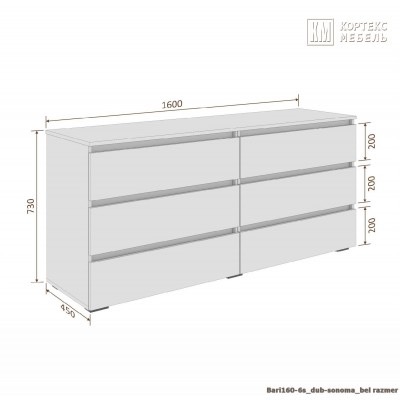 Комод Кортекс Мебель БАРИ 160-6ш (Дуб Сонома/Дуб Сонома/Дуб Сонома)