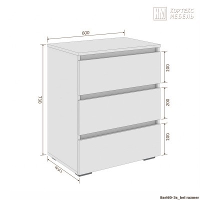 Комод Кортекс Мебель БАРИ 60-3ш (Дуб Сонома/Дуб Сонома/Белый)