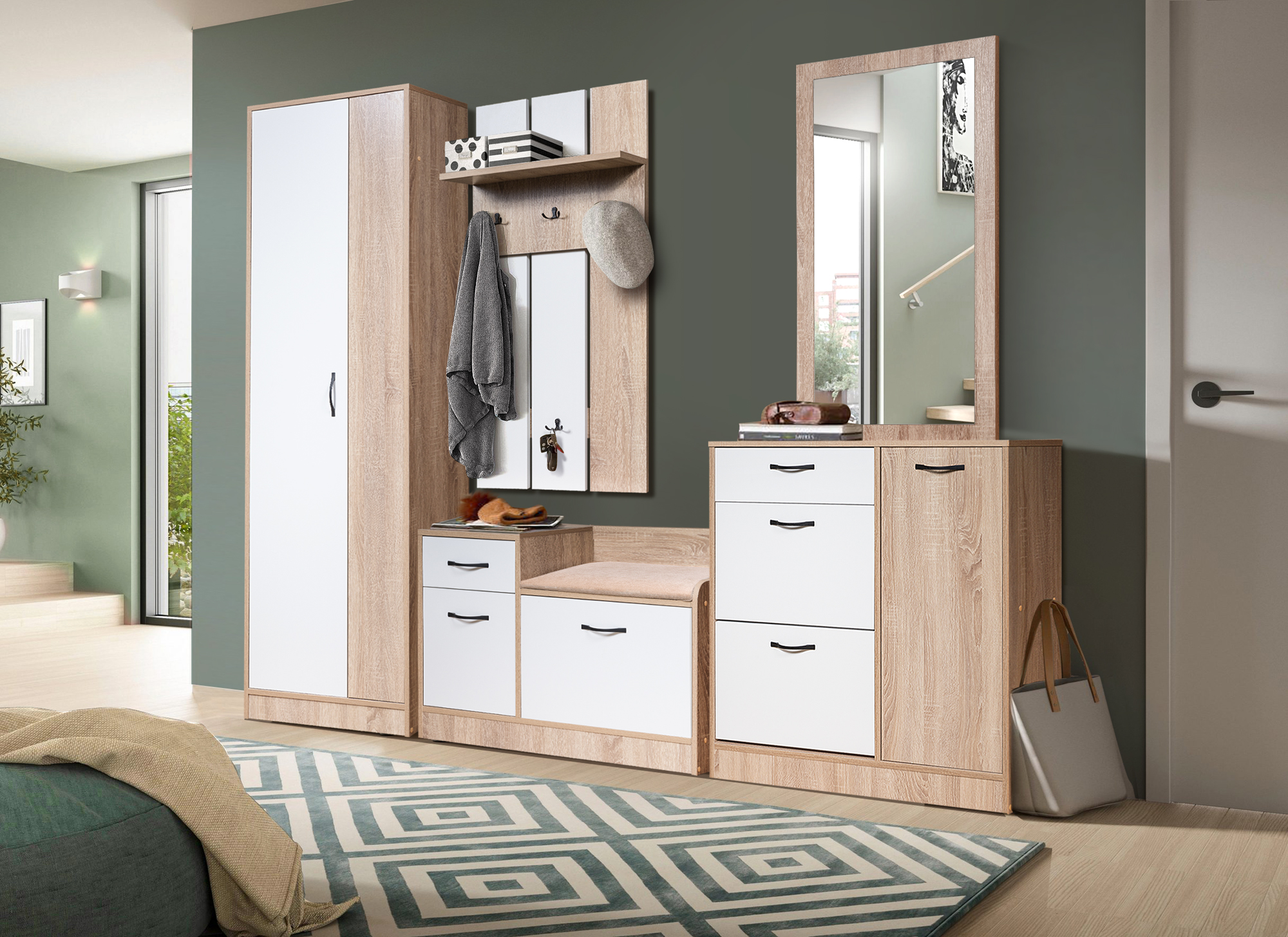 Вешалка МебельКласс Тайм-2 (Белый/Дуб сонома)